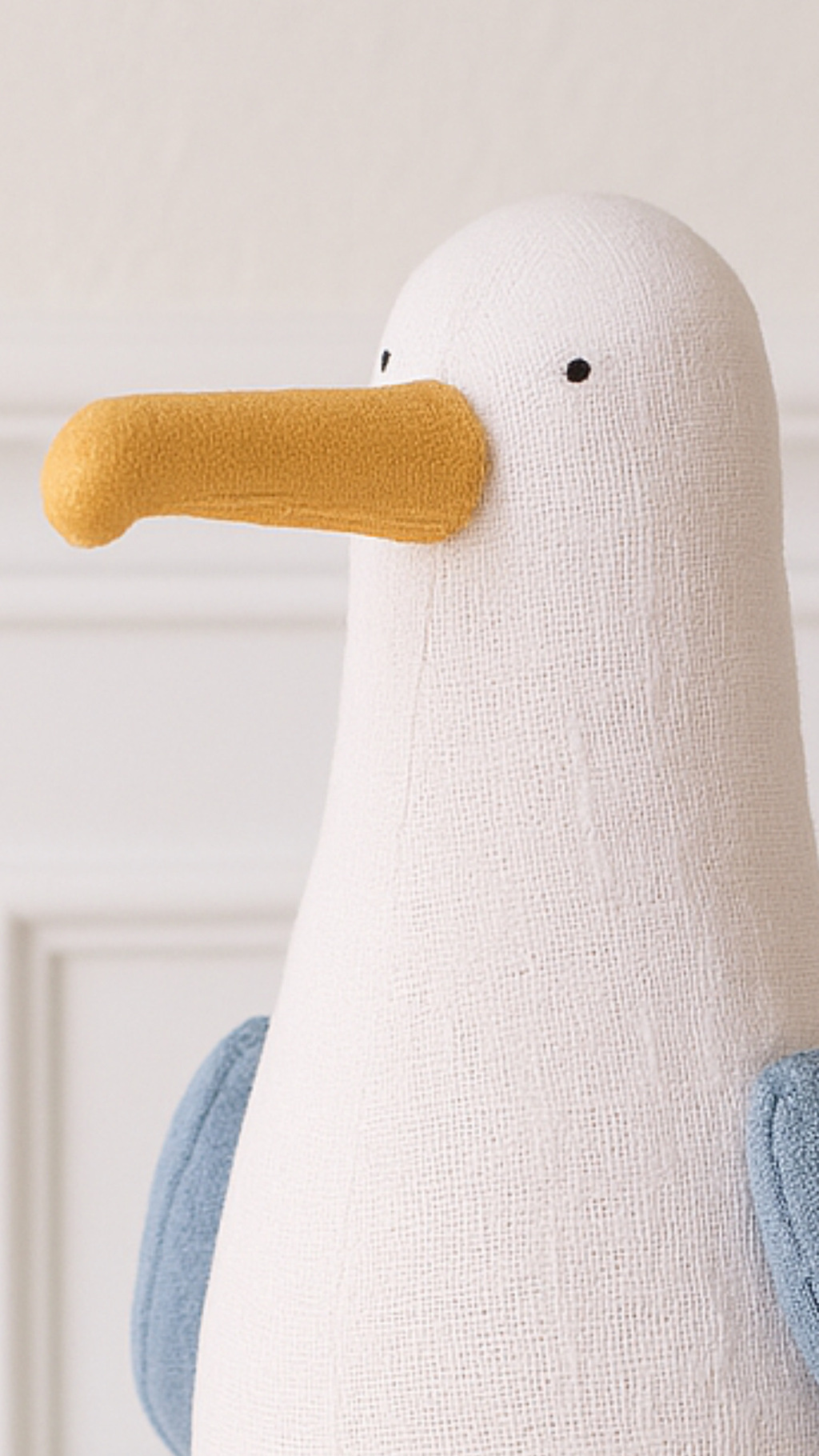 Com seu jeito engraçado e asas de marinheiro, ele adora pescar peixinhos de pano, brincar de navegar e dar boas risadas com os amigos das nuvens. Peter é curioso, corajoso e sempre voa alto pra descobrir coisas novas!